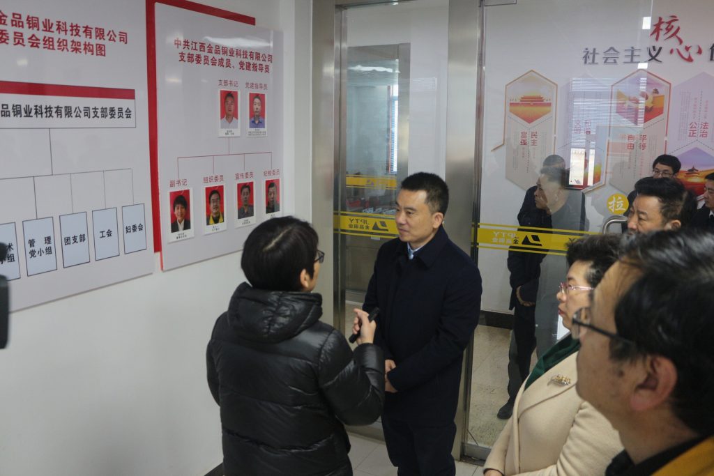 2022年2月15日(元宵节),抚州市委书记夏文勇一行深入抚州国家高新技术产业园区江西BG大游集团铜业科技有限公司调研公司非公党组织党建工作在企业发展、百亿目标达成、科研活动中所取得的成果,并与公司党支部负责干部进行了深入交流。他强调,各部门要全面推进复工复产,发挥非公党组织在民营企业中的引领作用,促进企业发展,引领思想方向,确保实现好的开局,再创新的辉煌。高新区党工委领导陪同调研。